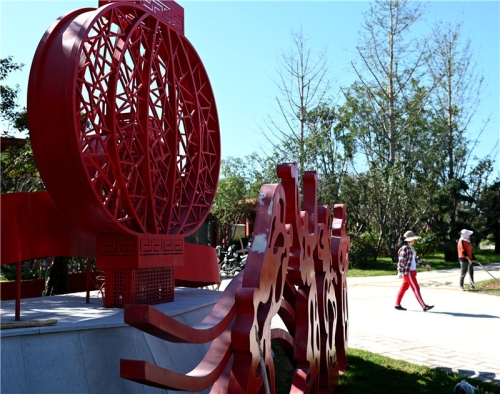 记者在烛华园看到,主入口左侧有金属雕塑的宫灯。三组红色宫灯大小不一,错落有致,传达出福寿、吉庆等美好寓意。雕塑后侧种植了栾树,因其果实形似灯笼又名灯笼树,一颗颗鹅黄、嫰青与粉红相间的果实如盏盏摇曳的灯笼,绚丽悦目,与园中的各式灯笼相呼应。