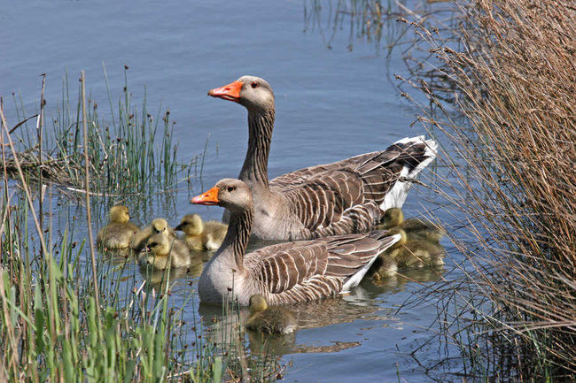 生活习性:主要栖息于富有芦苇和水草的湖泊、沼泽、草地等地,食物为各种水生和陆生植物的叶、根、茎、等植物性食物。喜群居,除繁殖期外多结群生活。警惕性较高,特别是成群在一起觅食和休息的时候,常有一只或数只灰雁担当警卫,观察着四方,一旦发现敌人临近,它们首先起飞,然后其他成员跟着飞走。繁殖期4-6月,一夫一妻制,营巢环境多为偏僻、人迹罕至的水边草丛或芦苇丛,每窝产卵4-8枚,一般4-5枚,孵化期27-29天,雌鸟单独承担,雄鸟在巢附近警戒。