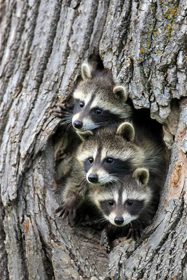 生活习性:浣熊最大的特征是眼睛周围黑色区域,俗称“黑眼圈”。爪子非常灵敏,可以依靠爪子测量食物的重量、尺寸、材质以及温度。生活在潮湿的森林地区,在树上建造巢穴,成对或结成家族一起活动。夜行性动物,白天在洞中睡觉,晚上十二点后觅食,喜食水果坚果等,也会捕食昆虫。交配季节为1或2月,妊娠期是63-65天,一胎4-5个。野生的已知最长寿命为12年。