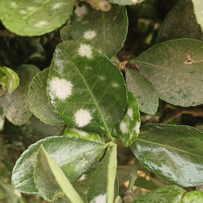 5、大叶黄杨白粉病。随气温回升,在病叶上越冬的病原菌也开始恢复生长,通过气流进行传播。叶片受害初期产生较小的白色粉状霉斑,单个病斑圆形,病斑扩大相互联合之后不规则,对植株的光合作用和景观效果造成较大影响。寄主植物:大叶黄杨。