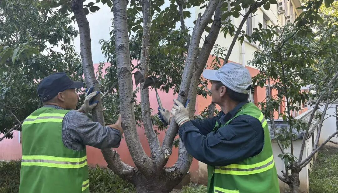 在蛀干害虫防治方面,该园组织工作人员开展拉网式排查,锁定以桃树、海棠等为主的天牛危害区域。针对虫害特点,采取“科学喷施+树干注射”相结合的靶向施药方案。合理配比药剂,通过喷施清除树体表面活动的害虫,并利用树干注射,准确灭杀内部藏匿的幼虫,有效控制虫口密度,阻断其进一步扩散。施药过程中,作业人员严格遵守安全操作规程,落实防护措施,保障园内生态与游客安全。