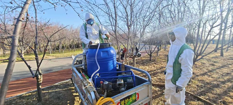 喷施作业时,该中心选择在晴天进行,重点喷洒枝干、树皮缝隙、枯枝落叶等病虫害藏匿处。此次作业共喷施80余万平方米,不仅可降低来年病虫基数,也为春季植物健康生长打下基础。