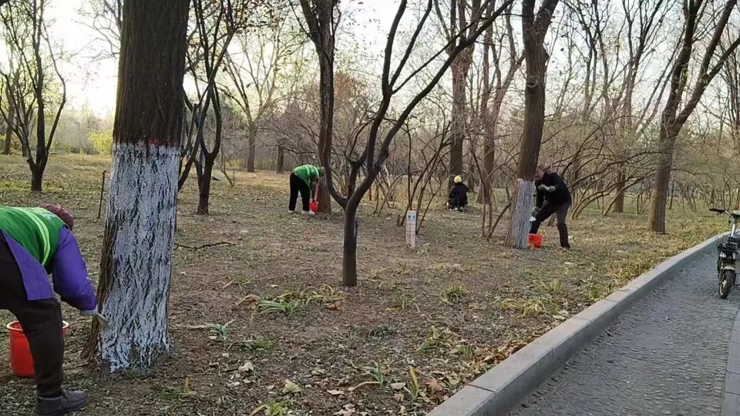 树木涂白是冬季园林养护的重要举措,通过涂白,可有效预防树木腐烂病,杀灭越冬虫卵及蛀干害虫。同时,还可防止野兔、鼠类等啃食树皮,为树木提供多重保护。此外,白色的涂层还能反射阳光,降低树干昼夜温差,避免冻裂损伤。