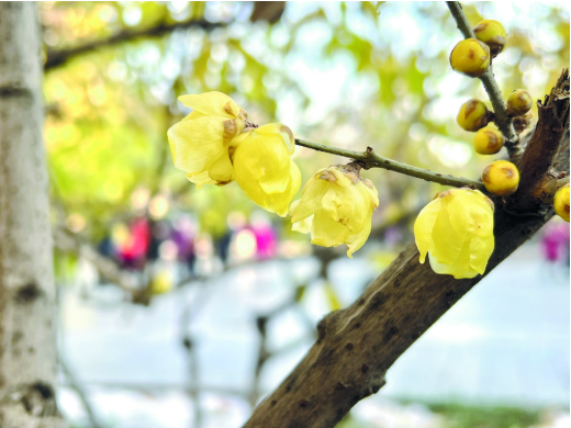 “每年这个时候都要来打卡,蜡梅顶着寒风开花的样子,看着就很有力量。”市民王大爷手持相机,正专注拍摄枝头初绽的花朵。不远处,几位年轻游客正站在含苞待放的蜡梅丛中,用手机镜头定格下美好瞬间。