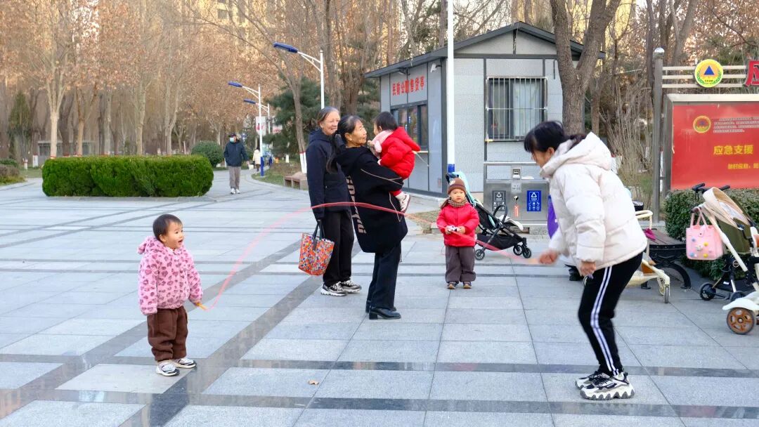 裕东公园里,冬日暖阳与音乐交织,广场舞者的舞姿动感轻快;不远处,踢毽子的游戏正酣,毽子在游客脚间翻飞穿梭,轻风伴着毽子飞舞,灵动的身姿与欢声笑语驱散了冬日沉闷。