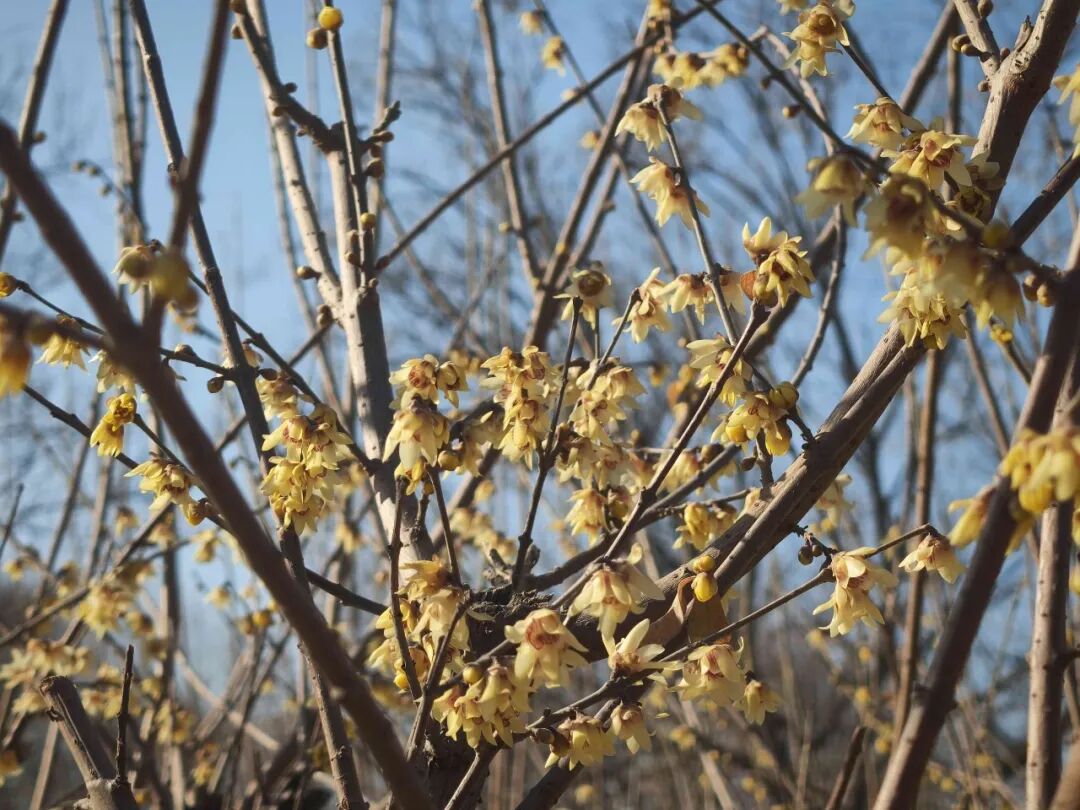 蜡梅是冬季开花的珍品,花期常在严寒的12月至次年2月,花瓣多呈金黄色,质地如蜡,散发出浓郁而清幽的香气,具有极强的耐寒特性,花香浓郁,有“暗香浮动”的独特魅力。作为中国传统文化中的坚韧象征,它常被赋予“岁寒不凋”的精神寓意。