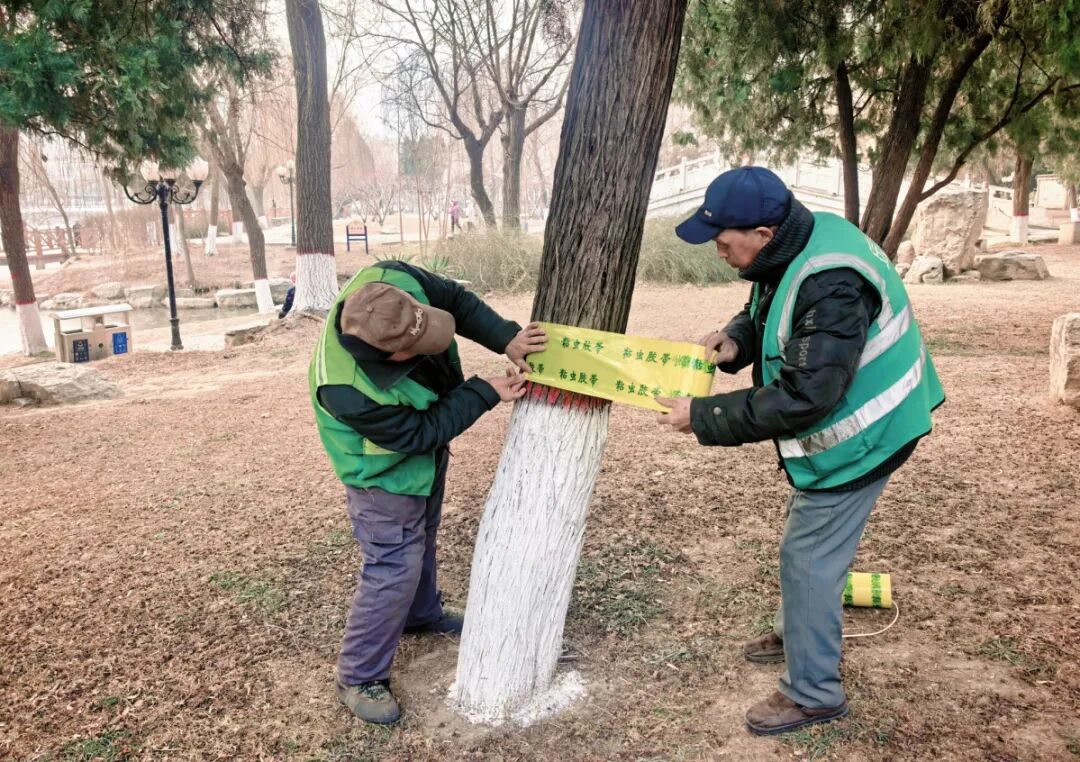 冬日护绿正当时!长安公园为树木穿上“防虫铠甲”