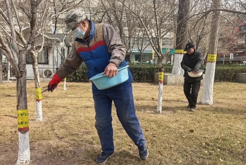 当前,随着气温变化,草履蚧若虫将进入出土上树关键期。为提升防治效果,市长安公园在完成树木防虫胶带缠绕工作的基础上,于近期集中开展了地面施药辅助治理,着力构建“地面控源+树干阻截”的综合防治体系。