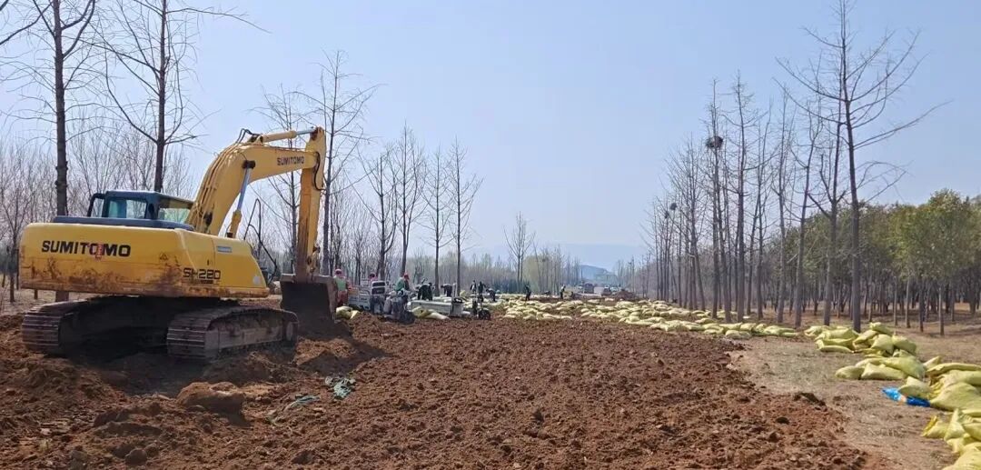 机械协同,改良地形。施工中,机械与人工高效配合,动用铲车、钩机、大型旋耕犁等设备,整理及铺新土约3000立方米,同步开展得块平整、疏松、塑形,优化地形坡度与排水条件。