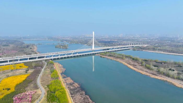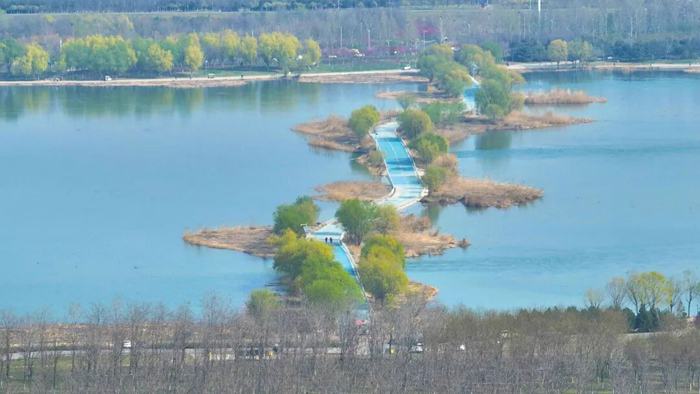 当春风拂过,滹沱河畔便晕开了一幅生机盎然的春日画卷。