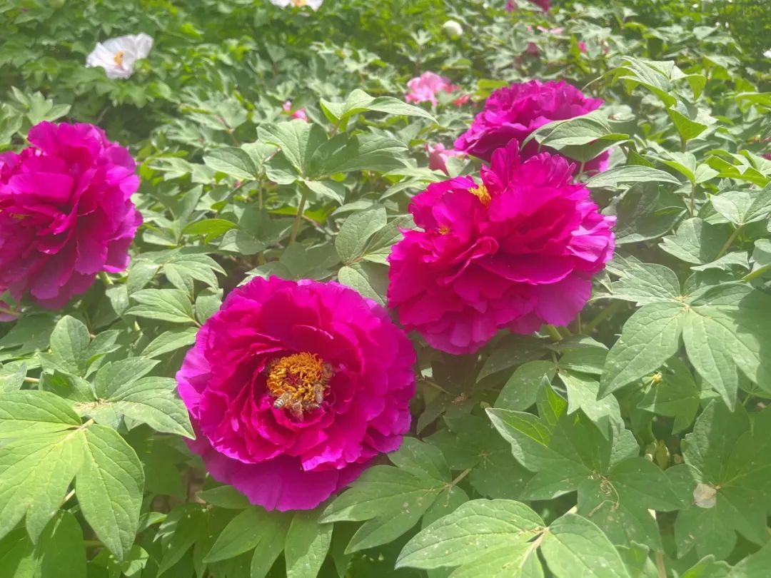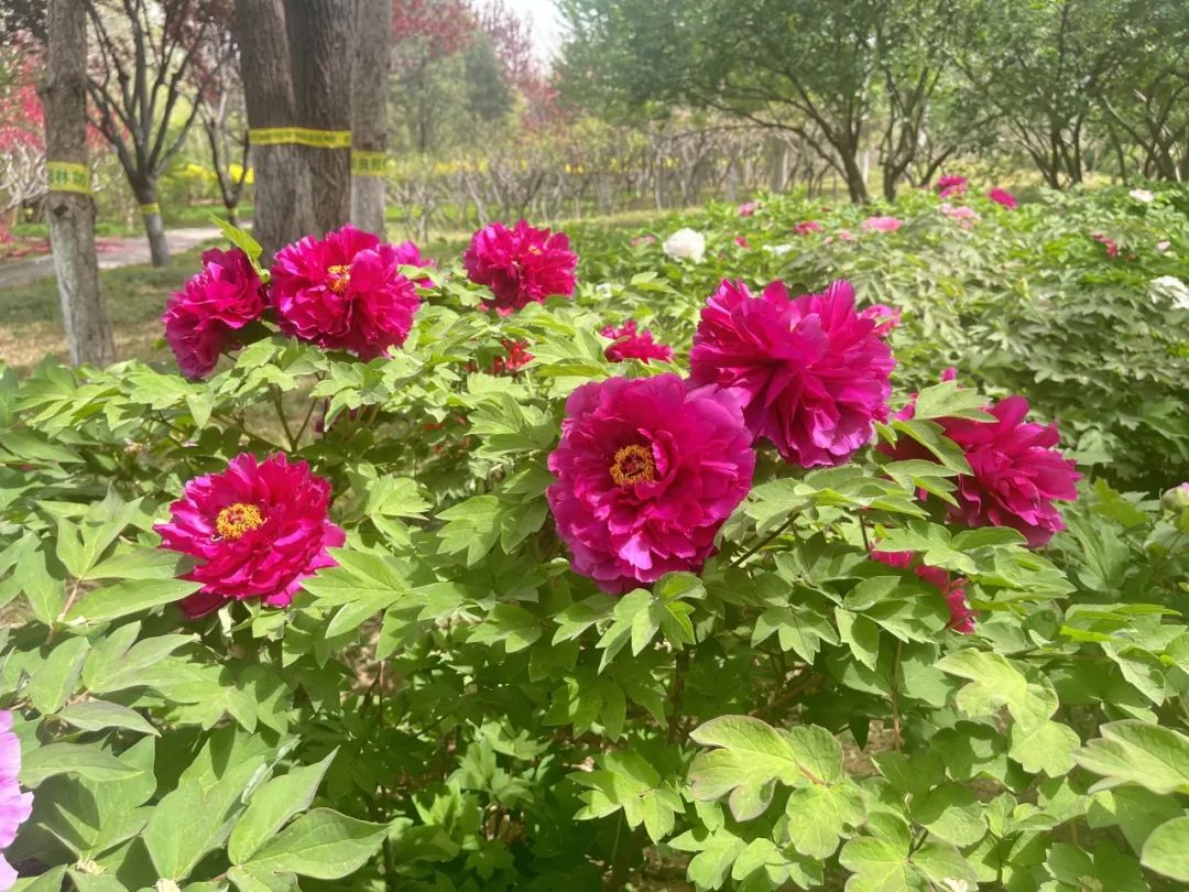 细心的赏花人会发现,牡丹园中也有片片芍药的青绿茎秆。这对 “姐妹花” 虽形貌相似,却暗藏差异:牡丹茎为木质,带树皮状裂纹,花朵昂首挺立;芍药茎秆柔嫩,花头微微低垂。唐代诗人刘禹锡笔下 “花开时节动京城” 的正是牡丹,因其花期比芍药早半月,古人便以 “谷雨看牡丹,立夏赏芍药” 道尽时令之妙。再过几日,待到本周末或下周,这些青绿茎秆上便会绽放出芍药的真面目,届时芍药与牡丹交相辉映,定是另一番绝美景象。