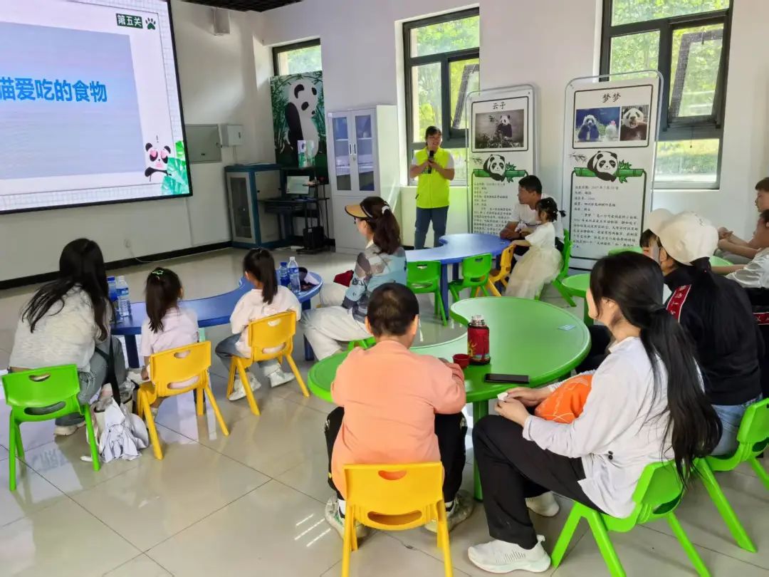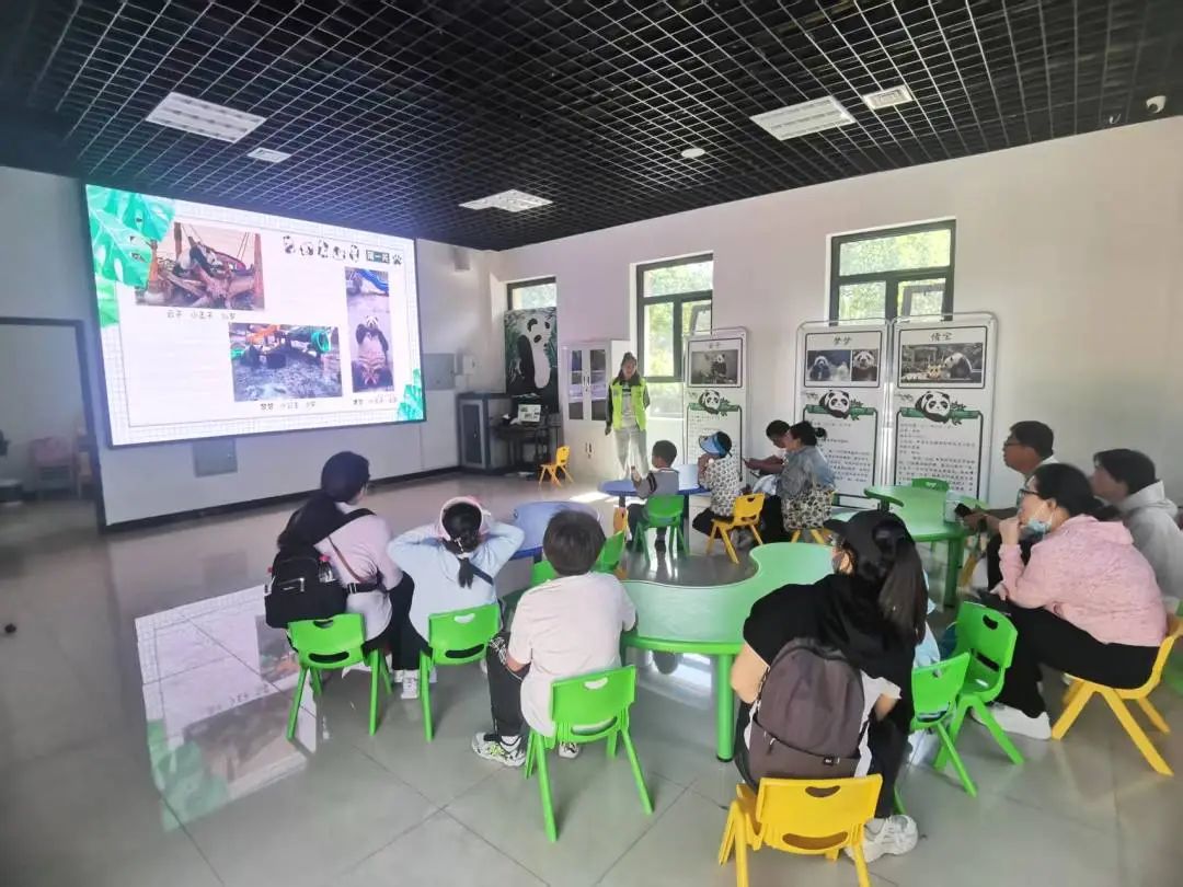 值得一提的是,五一假期期间,大熊猫课堂照常开放,而且全程免费。为了让更多游客能够参与其中,每日还额外加开一节课。在课堂上,志愿者们通过PPT讲解、播放科普视频、展示标本、开展互动问答等丰富多样的形式,向游客们深入介绍大熊猫独特的生活习性和开展生态保护的重要意义。
