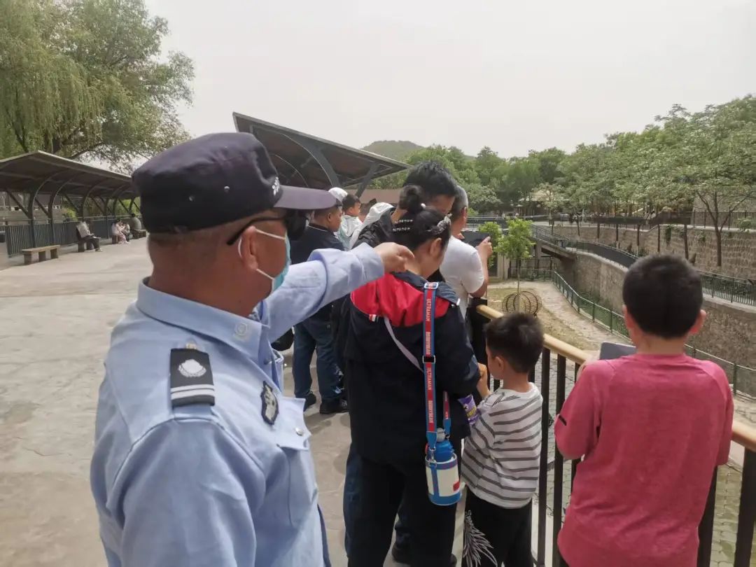 为应对假期大客流,园内在安保工作上做足准备。节前,对全园进行"地毯式"排查,确保每一处设施都万无一失。节日期间,安保人员全员上岗,在重点区域实行不间断巡逻。同时,及时劝阻游客文明游园,一旦发现翻越围栏、违规投喂等危险举动,立即上前制止,将安全隐患扼杀在萌芽状态。