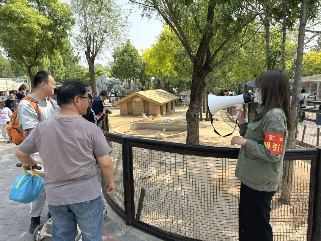 五一假期,石家庄市动物园职工与志愿者坚守岗位,守护游客与动物周全