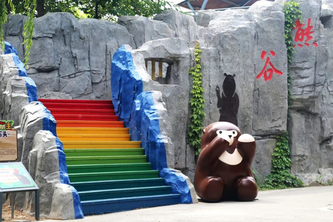 马来熊“小石头” 张开双臂疯狂发射可爱信号~旁边彩虹台阶直接给氛围感拉满,分分钟拍出元气满满的童话风照片,朋友圈C位预定!