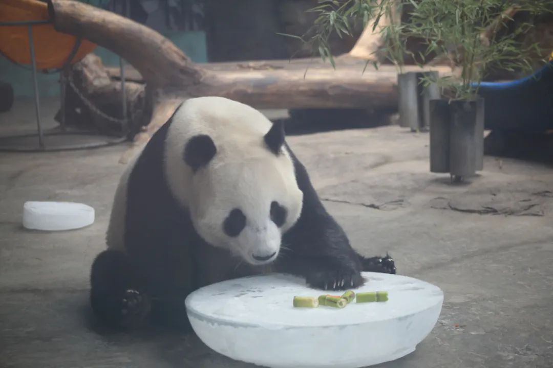 烈日当头,来点冰冰凉凉的自然最舒服了。在大熊猫馆,饲养员们为大熊猫制作了降温冰块,大熊猫“倩宝”正惬意地躺在空调房内,享受着这份清凉,时而翻滚,时而坐立,模样十分逗趣。
