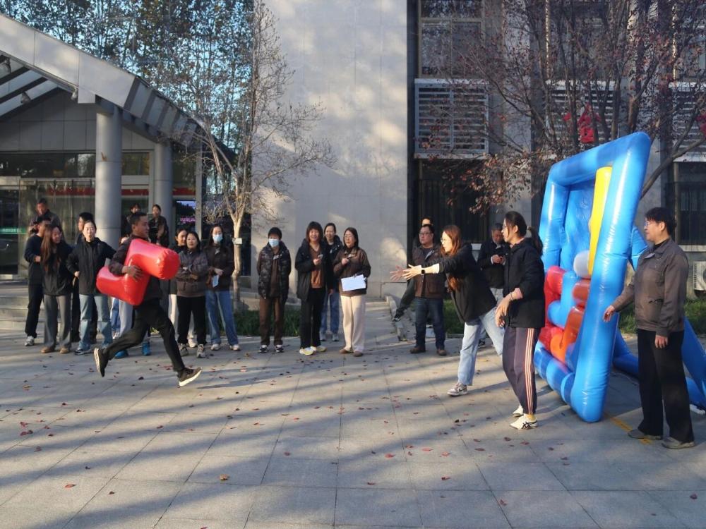 最后的“一飞冲天”项目要求4名队员一组,共同手持火箭道具把手从起点出发,需齐心协力冲向折返点,绕桩后再返回起终点。赛场上,小队成员们步调一致、齐头并进,争取以最快的速度完成比赛。大家在比赛中感悟着“团结就是力量”的深刻内涵。 此次趣味运动会不仅为员工提供了一个展现自我、释放活力的平台,更增进了同事间的沟通与协作,凝聚了团队力量。