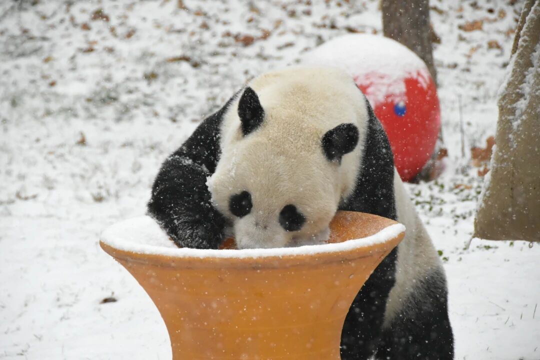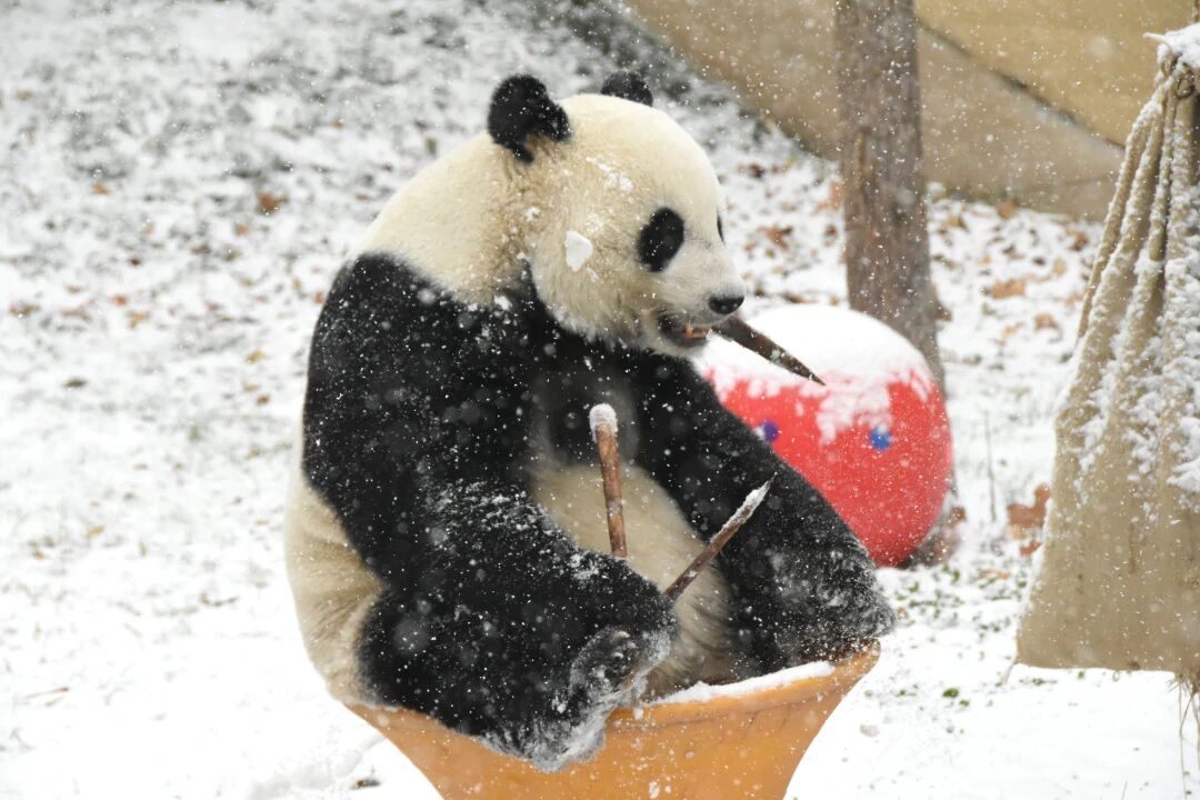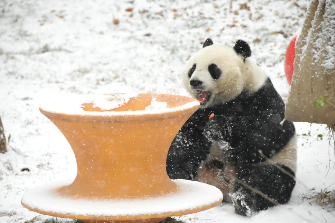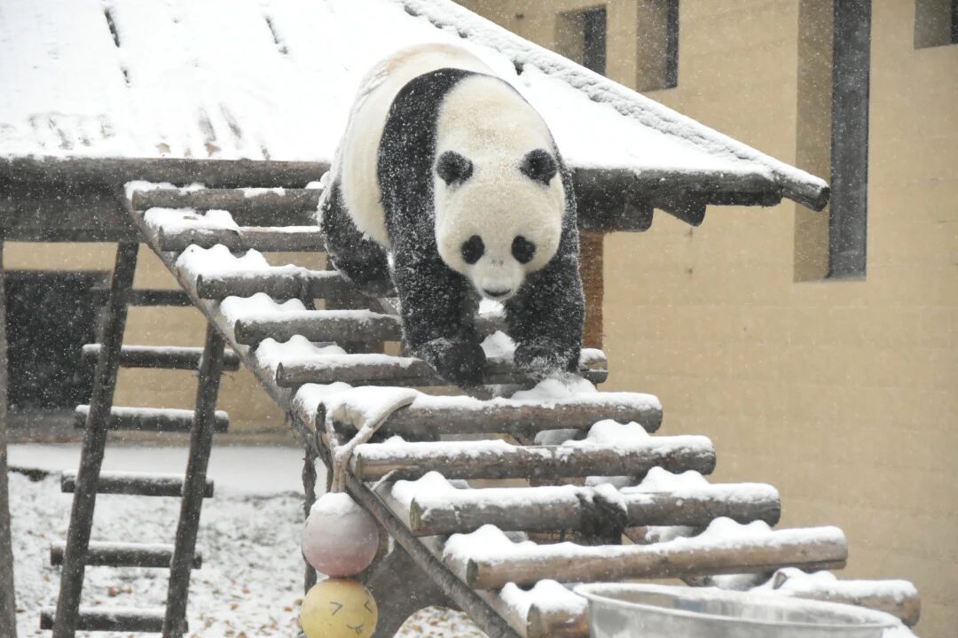 一转眼,园区各处都裹上了厚厚的“奶油糖霜”,而我们的“顶流”大熊猫,早就迫不及待开启雪地撒欢模式啦!