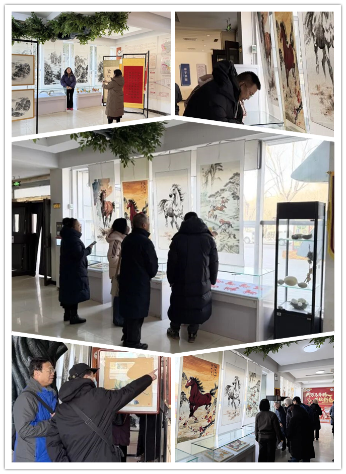 发言结束后,大家一同参观了“万马奔腾 共绘新春”书画展区。一幅幅作品笔墨各异,尽显骏马奔腾的雄姿。书画作者们纷纷驻足赏评、交流心得,现场艺术氛围浓厚。