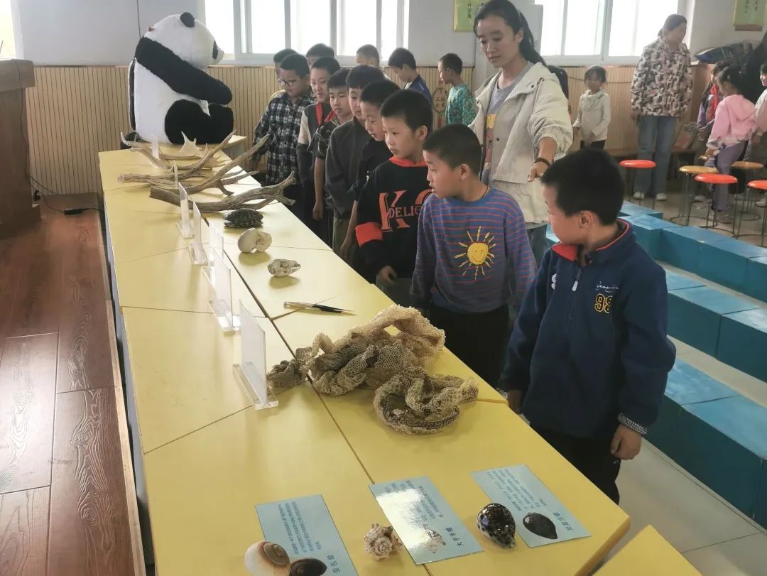 在标本展示环节,工作人员特别展出了蛇蜕、黇鹿角、猕猴头骨、巴西龟壳等珍贵的动物标本。这些真实的标本在工作人员的生动讲解下,不仅吸引了学生们的目光,也极大地激发了他们的好奇心和探索欲。通过近距离观察这些标本,学生们对野生动物的生理结构和生存特性有了更加直观和深刻的认识,增强了他们对生物多样性的理解。