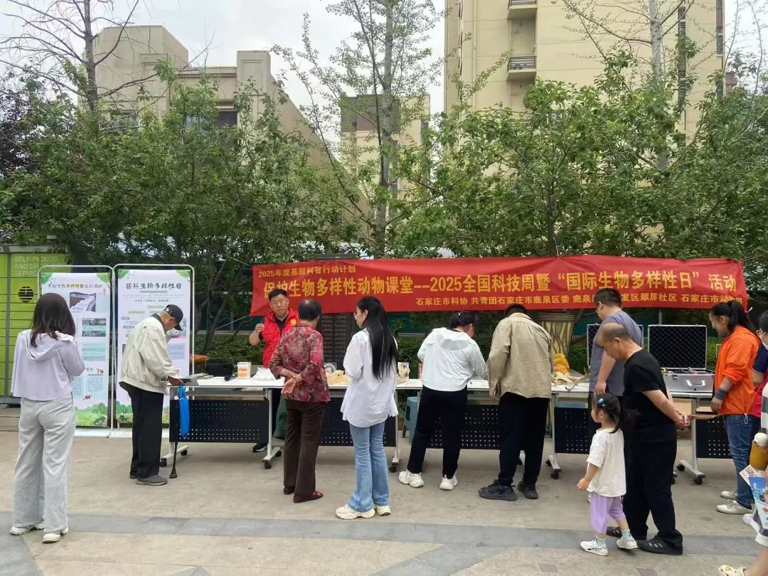 5月22日,由石家庄市科协、共青团石家庄市鹿泉区委主办,石家庄市动物园、鹿泉经济开发区翠屏社区承办的“2025年度基层科普行动计划 保护生物多样性动物课堂--2025年全国科技活动周暨‘国际生物多样性保护日’活动”在鹿泉经济开发区翠屏社区成功举办。本次活动做为“2025全国科技周”主题宣传活动,又逢“国际生物多样性保护日”,旨在为社区居民科普动物保护知识、增强公众对保护生物多样性重要性的认识。