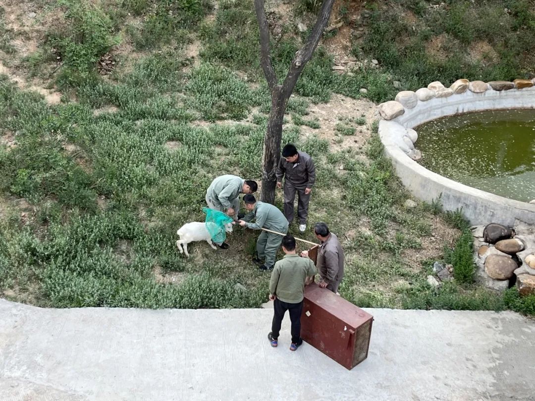饲养团队智擒“脱缰猛兽”。模拟一只大型动物突破围栏逃出展区的情景。饲养员发现异常后,立即上报并启动动物逃逸应急预案。各部门快速响应:安保人员迅速封锁周边区域,设置警戒带,防止动物进入人群密集区域。同时,动物管理科携、兽医院带专业麻醉设备,与安保人员密切配合,对逃逸动物进行围堵和麻醉捕获。经过一番紧张的行动,兽医远程使用麻醉枪实施麻醉,待药效发挥后,饲养管理人员用捕网将动物捕获,装入特制铁箱,随后驱车将其带离运动场,并清理现场。