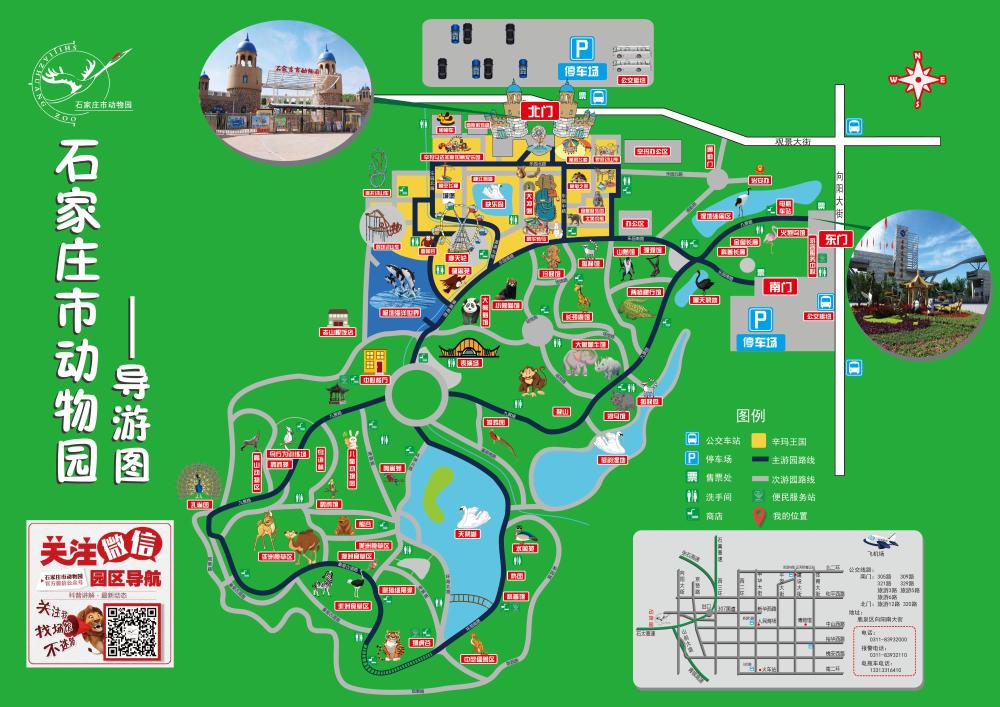 - 石家庄市动物园交通指南市内公交路线- 1、旅游5 路(节假日):新百广场西→土门关 - 旅游5 路(工作日):时光美食街→土门关 - 2、旅游6 路:运河桥南→动物园 - 3、其他线路 - 旅游12:省图书馆——动物园辛玛王国 ; - 320:火车站(西广场)——动物园辛玛王国; - 305:动物园——上吕; - 321:动物园——宜安 - 309:动物园——黄壁庄 - 316:鹿泉火车站——动物园——水峪 - 以上路线仅供参考,以实际路线为准。 自驾游路线- 1、.新华西路向西直行沿307国道至鹿泉区向阳大街十字路口南行500米即到。 - 2、中山西路向西直行至上庄陆军学院右转向北行至307国道左转向西直行至向阳大街十字路口南行500米即到。 - 3、和平西路向西直行至鹿泉区向阳大街左转南行800米即到。 - 4、槐安西路向西直行至山前大道北行5公里即到。