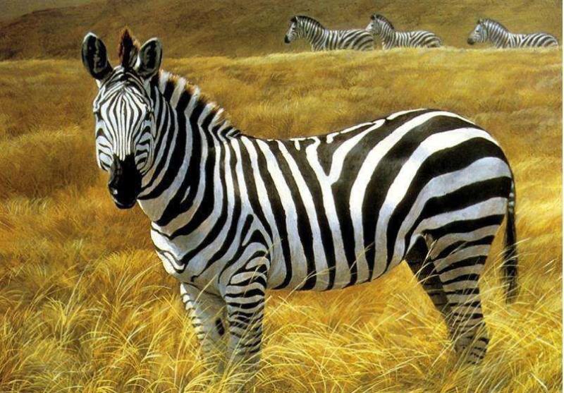 生活习性:斑马因其身上有起保护作用的斑纹而得名,是非洲特产。斑马有很强的社会性,属于群居动物,多由雌兽和幼仔组成。成年雄兽通常过独居的生活,用排出来的粪便作为领地边界的标记。草食性动物,灌木、树枝、树叶甚至树皮也是它们的食物。视觉很好,眼睛可以同时看见远处的东西和近处的东西。在觅食时由群体成员轮流担任警戒任务,一有危险便发出长嘶的警告信号,群体立即停止进食,迅速逃跑。斑马奔跑的速度快而持久,每小时可达60-80公里,从而能够经常逃脱食肉兽类的追杀。寿命约为20-30年。