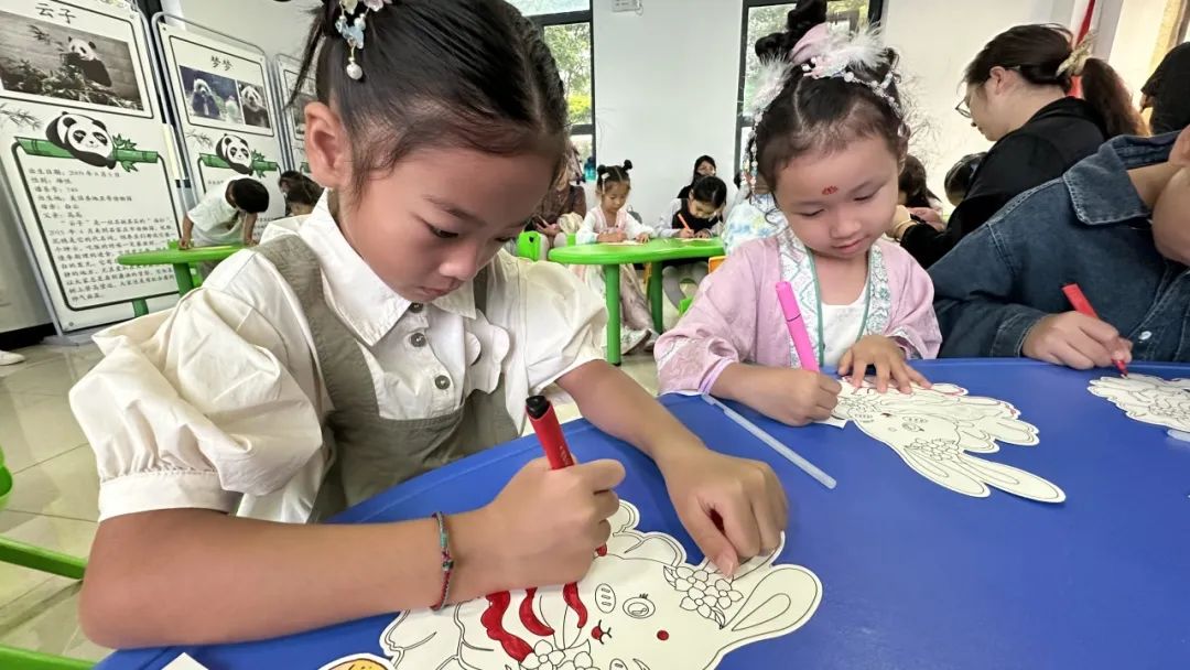 在手工绘画环节,孩子们尽情发挥想象力和创造力,在“中秋扇子”上描绘出他们心目中的动物形象,一个个憨态可掬的身影跃然于纸上,尽显童趣。