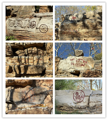在启动此志愿服务项目之初,我园工作人员携手绘画团队,实地深入开展了全方位的勘查工作。选取了园内珍猴馆北侧自东向西的假山岩石,依据其不同质地、独特形状的特点,围绕着“民俗、文化、创意、自然、吸睛”的主题,精心设计,巧妙地将古人日常生活、农耕畜牧、图腾文化等元素融入假山岩画创作之中,既传承民俗文化精髓,又将古人劳动所凝萃的艺术瑰宝淋漓尽致地展现出来。