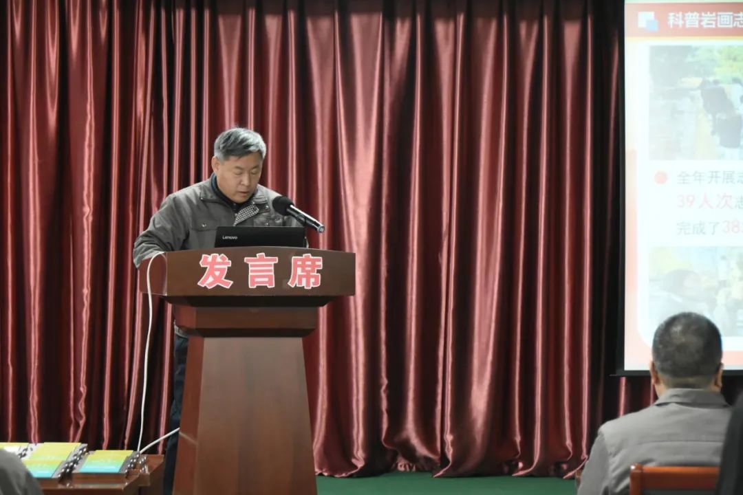 会议分为工作总结、未来工作计划及表彰三部分。首先通过PPT的形式,展示了过去一年中志愿者们在科普教育、游客引导等方面的显著成果,并对优秀志愿者的无私奉献表示感谢。