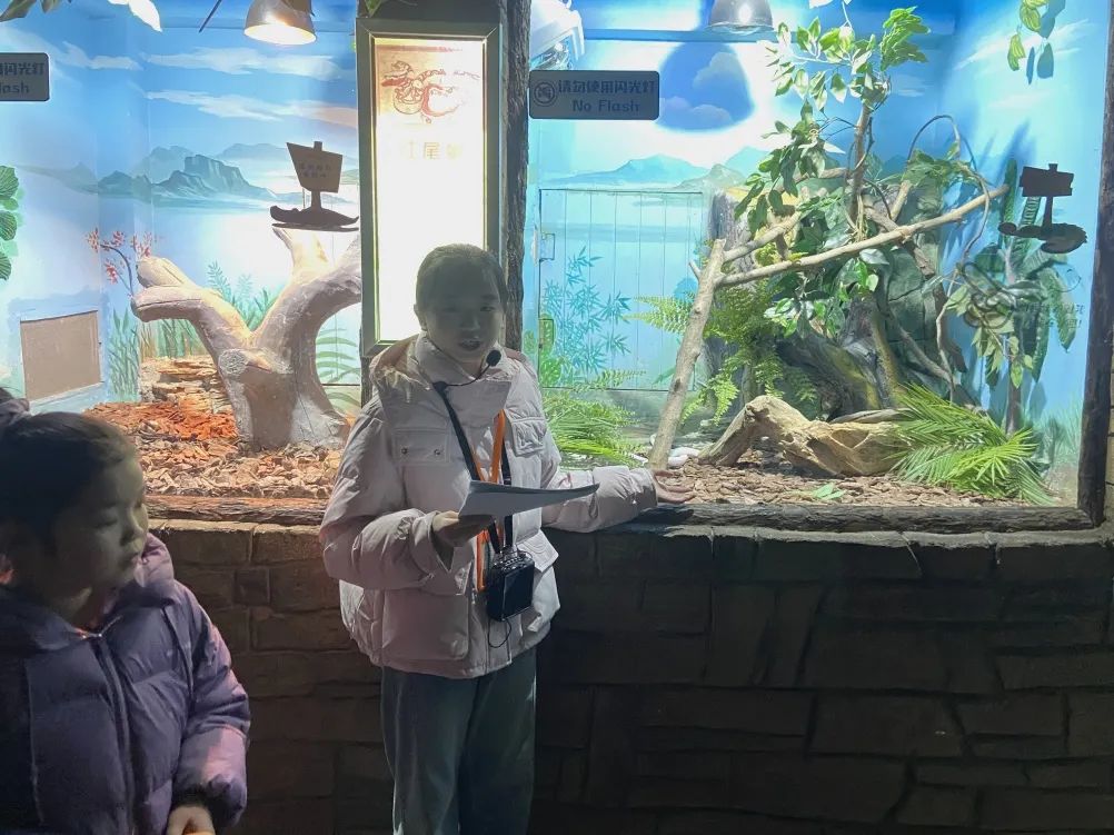 活动现场,两栖爬行动物馆成为传播科普知识与汉字文化的生动课堂。小朋友们化身“小小讲解员”,以纯真且富有感染力的表达,为游客悉心讲解与蛇文化相关的古汉字知识。他们通过生动有趣的阐释,巧妙地将神秘的蛇文化与源远流长的汉字智慧紧密相连,使游客在轻松愉悦的氛围中,深切领略到文化的独特魅力。