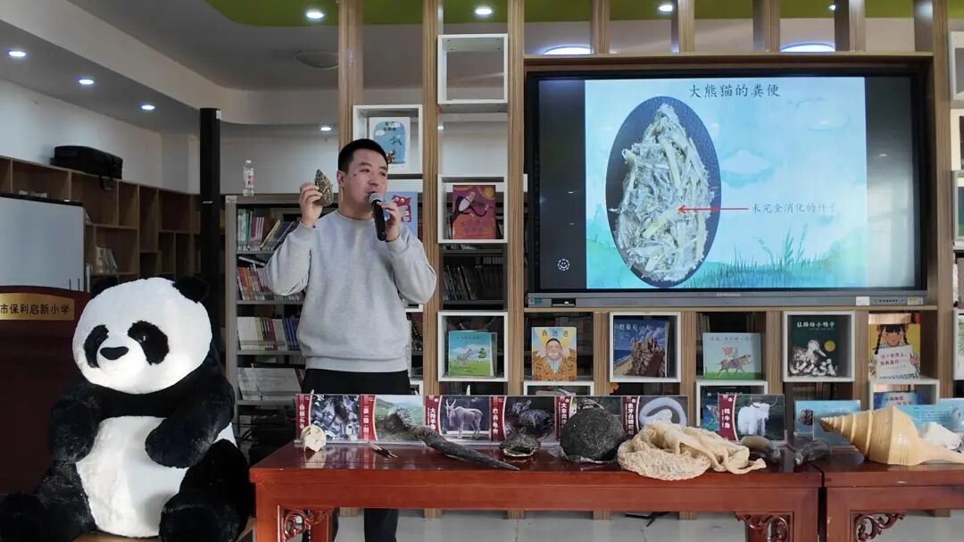 “大熊猫喜欢吃竹子,还喜欢吃其他食物吗?”12月18日,志愿者李艳培和同事走进辖区小学,在大熊猫科普课堂宣讲中,通过科普视频、课件以及大熊猫幼崽、头骨、掌骨模型展示的形式,向同学们介绍了大熊猫的生活习性、生存现状、保护措施以及它们在生态系统中的重要性,并一一解答了同学们所提的问题。通过自然课堂的学习,使课本中的知识更生动了,拓宽了小学生的视野。