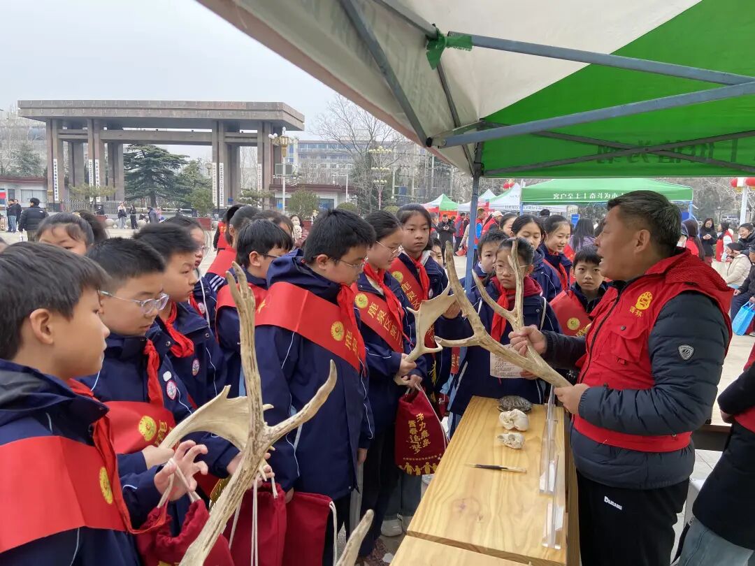 在石家庄市鹿泉区石井乡岸下村小学的教室里,张立佩和队员们扛着动物标本和教具,为这所山区小学的留守儿童们搭建起一个临时的“微型自然博物馆”。当孩子们用好奇的眼神打量着一件件标本,小心翼翼地触摸马鹿的鹿角时,知识的种子悄然萌芽。角落里,几个有些腼腆的孩子不敢上前,张立佩便主动蹲下身,耐心讲解,手把手教他们做科普手工,直到他们放下拘谨,露出笑脸。